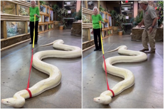 Viral Video: рд╕реЛрд╢рд▓ рдореАрдбрд┐рдпрд╛ (Social Media) рдкрд░ рд╡реИрд╕реЗ рддреЛ рдЬрд╛рдиреЗ рдХреНрдпрд╛-рдХреНрдпрд╛ рд╡рд╛рдпрд░рд▓ (Viral Video) рд╣реЛрддрд╛ рд╣реИ, рд▓реЗрдХрд┐рди рдЗрд╕ рдмрд╛рд░ рдЬреЛ рд╡реАрдбрд┐рдпреЛ рд╡рд╛рдпрд░рд▓ рд╣реБрдЖ рд╣реИ рдЙрд╕реЗ рджреЗрдЦрдХрд░ рдЖрдк рднреА рд╣реИрд░рд╛рди рд░рд╣ рдЬрд╛рдПрдВрдЧреЗред 14-15 рдлреАрдЯ рд▓рдВрдмреЗ рд╡рд┐рд╢рд╛рд▓ рдЕрдЬрдЧрд░ рдХреЗ рдЧрд▓реЗ рдореЗрдВ рдкрдЯреНрдЯрд╛ рдбрд╛рд▓рдХрд░ рдПрдХ рджрд╛рджреА рдШреВрдордиреЗ рдХреЗ рд▓рд┐рдП рдирд┐рдХрд▓ рдЧрдИред рд╕реБрдирдХрд░ рдЖрдкрдХреЛ рднреА рдЕрдЪрдВрднрд╛ рд╣реЛрдЧрд╛, рд▓реЗрдХрд┐рди рдпреЗ рд╕рдЪ рд╣реИред рдЙрдиреНрд╣реЗрдВ рд▓рдЧрд╛ рдХрд┐ рд╡реЛ рдЙрдирдХрд╛ рдбреЙрдореА рд╣реИред рдЗрд╕рдХрд╛ рдмрд╛рдж рдЬреЛ рд╣реБрдЖ рд╡реЗ рджреЗрдЦрдХрд░ рдЖрдкрдХреЗ рднреА рд╣реЛрд╢ рдЙрдбрд╝ рдЬрд╛рдПрдВрдЧреЗред