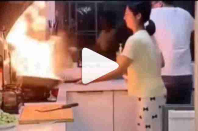 कुछ सेकंड के इस वीडियो को देख आपकी हंसी नहीं रुकेगी। वीडियो में किचन में पति-पत्नी खाना बना रहे होते हैं और उनका बच्चा वहीं खड़ा होकर खेल रहा होता है। तभी पत्नी से खाना बनाते हुए उसमें कुछ ऐसा डालती है जिसमें आग निकलने लगता है। ये देख उसका पति हैरान हो जाता है और अपने बच्चे को लेकर वहां से भाग उठता है। ये देख पत्नि पहले तो सोच में पड़ जाती है। फिर उसको पति पर ऐसा गुस्सा आता है कि मानों अब उसकी खैर नहीं।