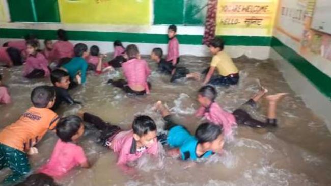 सामने आए वीडियो में देखा जा सकता है कि स्कूल के एक क्लास में पानी भर दिया गया और बच्चों को उसमें मौज मस्ती करने की छूट दे दी गई। स्कूल के प्रिंसिपल वैभव सिंह राजपूत ने कहा कि इससे स्कूल आने वाले छात्रों की संख्या में वृद्धि देखने को मिली है।