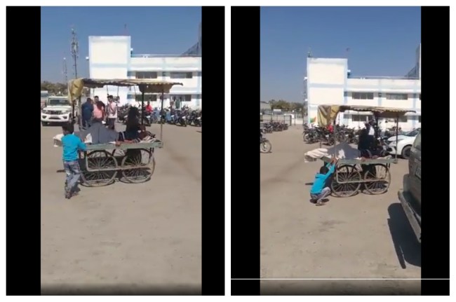 6 साल का बच्चा अपने बीमार पिता को ठेले पर लेकर पहुंचा अस्पताल
