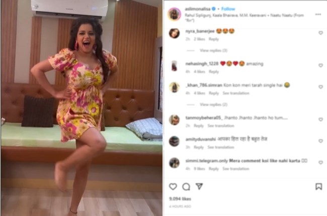 यूजर्स मोनालिसा के डांस परफॉर्मेंस पर मिलाजुला रिएक्शन दे रहे हैं। किसी ने डांस की तारीफ की तो किसी को उनका डांस और एक्सप्रेशन पसंद नहीं आए। मोनालिसा ने वीडियो शेयर करते हुए लिखा, ‘ऑस्कर घर आने की खुशी।’ वीडियो को कुछ घंटों में ही 62 हजार से अधिक लोग देख चुके हैं। 200 से अधिक लोग कमेंट्स कर चुके हैं और 9 हजार से अधिक लोग वीडियो को लाइक कर चुके हैं।