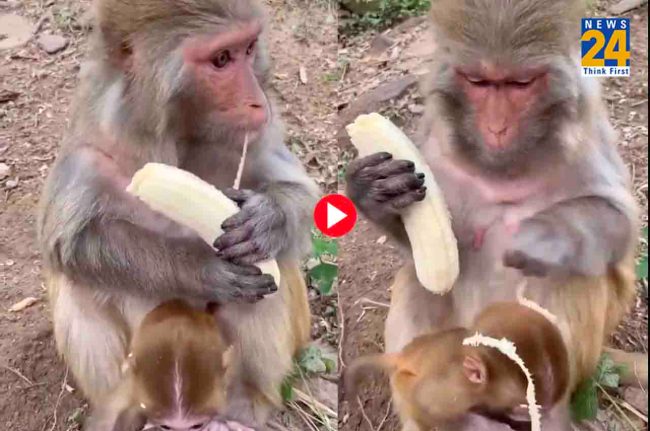 वायरल हो रहे वीडियो में देखा जा सकता है कि एक बंदरिया और उसका बच्चा कहीं से एक केलालेकर आए हैं। बच्चा केले को खाने के लिए मचल रहा है, लेकिन बंदरिया अपना पूरा वक्त इसे छीलने और साफ करने में लगाती है। वो पहले तो छिलका हटाती है और फिर एक-एक रेशा निकालकर फेंकती है। इतना ही नहीं वो उस रेशे को बच्चे से दूर कर देती है, ताकि वो इसे नहीं खा सके। आखिरकार जब केला पूरी तरह से साफ हो जाता है, तब बंदरिया इसे खाना शुरू करती है।
