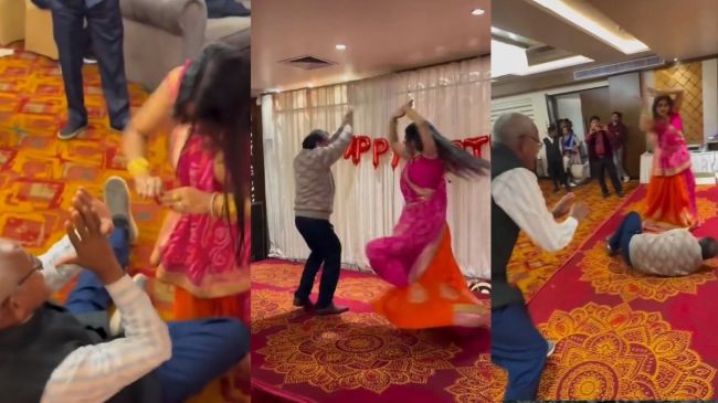 वीडियो में महिला और एक बुजुर्ग पुरुष नागिन गाने पर डांस करते दिखाई दे रहे हैं। वीडियो किसी फंक्शन का है। इसमें डांस कर रही महिला और बुजुर्ग को कई लोग देख रहे हैं। कुछ लोग वीडियो भी रिकॉर्ड कर रहे थे। नागिन डांस के बीच एक तीसरे शख्स की भी एंट्री हो गई। यह शख्स जमीन पर ही लेटकर छटपटाने लगा।