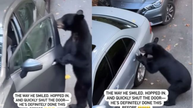 इंस्टाग्राम पर एक चौंकाने वाला लेकिन मजेदार वीडियो सामने आया है, जिसमें एक विशालकाय काला भालू कार का दरवाजा खोलता है और उसमें कूदता हुआ बैठ जाता है। सोशल मीडिया पर वायरल हुए इस वीडियो ने लोगों को हैरत में डाल दिया है।