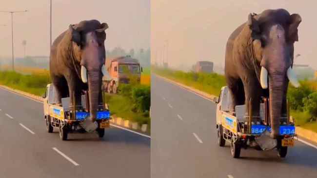 рд╡реАрдбрд┐рдпреЛ рдореЗрдВ рджреЗрдЦрд╛ рдЬрд╛ рд╕рдХрддрд╛ рд╣реИ рдПрдХ рдЧрд╛реЬреА рдЬрд┐рд╕реЗ рдЫреЛрдЯрд╛ рд╣рд╛рдереА рдХрд╣рддреЗ рд╣реИрдВ, рдЙрд╕ рдкрд░ рдПрдХ рд╡рд┐рд╢рд╛рд▓ рд╣рд╛рдереА рд╕рд╡рд╛рд░ рд╣реИред рд╣реИрд░рд╛рдиреА рдХреА рдмрд╛рдд рд╣реИ рдпреЗ рд╣реИ рдХрд┐ рдЗрд╕ рд╡рд┐рд╢рд╛рд▓рдХрд╛рдп рд╣рд╛рдереА рдХреЛ рд▓реЗ рдЬрд╛ рд░рд╣рд╛ ‘рдЫреЛрдЯрд╛ рд╣рд╛рдереА’ 80 kmph рдХреА рд░рдлреНрддрд╛рд░ рд╕реЗ рд╕реЬрдХ рдкрд░ рджреМреЬ рд░рд╣рд╛ рд╣реИред рд╡реАрдбрд┐рдпреЛ рджреЗрдЦ рд▓реЛрдЧреЛрдВ рдХреЛ рдпрдХреАрди рдирд╣реАрдВ рд╣реЛ рдкрд╛ рд░рд╣рд╛ рд╣реИ рдХрд┐ рдпреЗ рд╣рд╛рдереА рдЕрд╕рд▓реА рд╣реИ рдпрд╛ рдирдХрд▓реАред