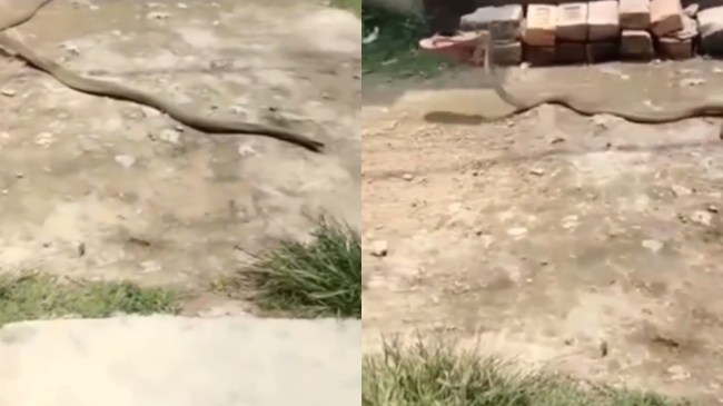 जब महिला ने सांप को चप्पल से मारा तो सांप रुक तो गया लेकिन फिर वह चप्पल लेकर भागने लगा। सांप ने अपने मुंह से चप्पल को पकड़ लिया और वहां से भागने लगा। वीडियो में महिला कह रही है, इधर मत आओ लेकिन जब सांप नहीं रुका तो उसने चप्पल फेंक दिया। सांप के मुंह में चप्पल फंस गया और वह चप्पल लेकर वहां से भाग गया।