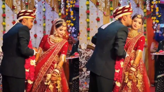 рджреБрд▓реНрд╣рди рд╕реЗ рдлрд┐рд░ рд╕реЗ рдХреБрдЫ рдХрд╣рд╛, рдЗрд╕рдХреЗ рдмрд╛рдж рджреБрд▓реНрд╣рди рдереЛреЬреА рд╕реА рдЖрдЧреЗ рдЖрдИ рдФрд░ рдлрд┐рд░ рджреВрд▓реНрд╣реЗ рдиреЗ рджреБрд▓реНрд╣рди рдХреЗ рдЧрд╛рд▓ рдкрд░ рдХрд┐рд╕ рдХрд░ рд▓рд┐рдпрд╛ред рдпрд╣ рджреЗрдЦрддреЗ рд╣реА рд╡рд╣рд╛рдВ рдореМрдЬреВрдж рд▓реЛрдЧ рд╣реВрдЯрд┐рдВрдЧ рдХрд░рдиреЗ рд▓рдЧреЗред рд╕реЛрд╢рд▓ рдореАрдбрд┐рдпрд╛ рдкрд░ рдпрд╣ рд╡реАрдбрд┐рдпреЛ рд╡рд╛рдпрд░рд▓ рд╣реЛ рд░рд╣рд╛ рд╣реИред рд╡реАрдбрд┐рдпреЛ рдкрд░ рд▓реЛрдЧреЛрдВ рдХреА рддрд░рд╣ -рддрд░рд╣ рдХреА рдЯрд┐рдкреНрдкрдгрд┐рдпрд╛рдВ рд╕рд╛рдордиреЗ рдЖ рд░рд╣реА рд╣реИрдВред