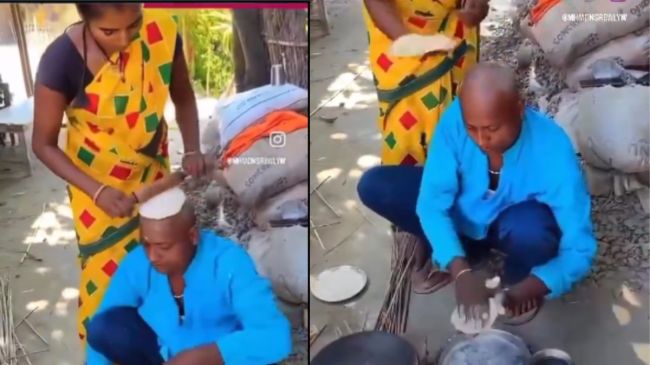 рдЗрд╕ рд╡реАрдбрд┐рдпреЛ рдХреЛ рдПрдХреНрд╕ рдкрд░ рдкреЛрд╕реНрдЯ рдХрд┐рдпрд╛ рдЧрдпрд╛ рд╣реИ, рдЬрд┐рд╕рдореЗрдВ рдорд╣рд┐рд▓рд╛ рдЕрдкрдиреЗ рдкрддрд┐ рдХреЗ рдЧрдВрдЬреЗрдкрди рдХрд╛ рдкреВрд░рд╛ рдЗрд╕реНрддреЗрдорд╛рд▓ рдХрд░ рд░рд╣реА рд╣реИред рдорд╣рд┐рд▓рд╛ рдЕрдкрдиреЗ рдкрддрд┐ рдХреЗ рд╕рдкрд╛рдЯ рд╕рд░ рдХреЛ рдЪрдХрд▓реЗ рдХреА рддрд░рд╣ рдЗрд╕реНрддреЗрдорд╛рд▓ рдХрд░ рд░рд╣реА рд╣реИ рдФрд░ рдЗрд╕ рдкрд░ рдЖрдЯрд╛ рд▓рдЧрд╛рдХрд░ рд░реЛрдЯрд┐рдпрд╛рдВ рдмреЗрд▓рддреА рдирдЬрд░ рдЖ рд░рд╣реА рд╣реИред