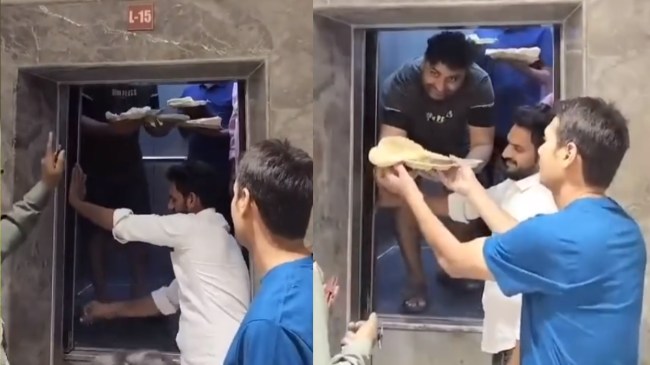 लिफ्ट में फंसे शख्स ने नीचे खड़े लोगों से कहा कि पहले मेरे भटूरे पकड़ो यार। यह सुनकर सभी को हंसी आ गई। कुछ लोगों ने आगे जाकर प्लेट को पकड़ लिया और एक एक कर लिफ्ट में फंसे तीनों बाहर निकल आए। अब इस वीडियो को देखने के बाद लोग इस पर मजेदार टिप्पणी कर रहे हैं।