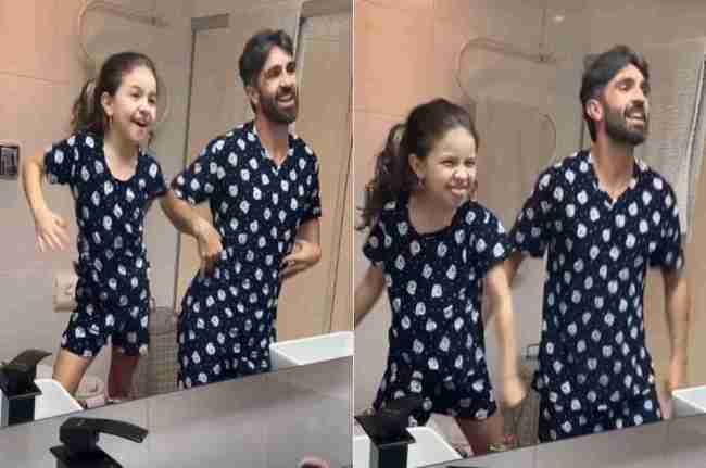 वायरल हो रहे इस वीडियो में एक छोटी बच्ची अपने पापा के साथ डांस करते देखी जा रही है। वीडियो में बच्ची और उसके पापा दोनों ने एक जैसे कपड़े पहने हैं। जिसे देख यूजर्स काफी खुश लग रहे हैं। पापा और उसकी बच्ची दोनों बाथरुम में मिरर के सामने डांस कर रहे हैं। वीडियो में बच्ची इतनी प्यारी लग रही है जिसे देख सभी की आंखें उसी पर टिक गई है।