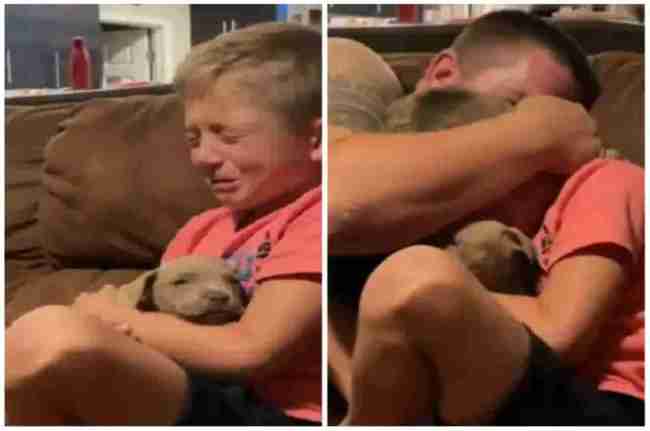 Surprising their son with a puppy! He named him Milo!