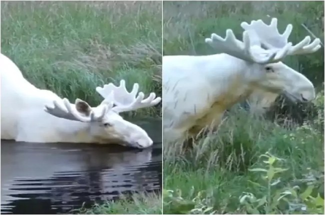 Viral Video: जानवरों की प्रजातियां विलुप्त होती जा रही हैं। देखा जाए तो शहरी दुनिया बढ़ती जा रही है और जंगल का दायरा घटता जा रहा है। हम खतरनाक जंगली जानवरों की हमेशा बात करते हैं, लेकिन अब हिरण की एक दुर्लभ प्रजाति का moose सामने आया है। यह देखने में बिलकुल रेयर है। इसको देखकर कहना मुश्किल है कि ये भी हिरण की एक प्रजाति में से ही है। इन दिनों इस खूबसूरत जानवर की वीडियो खूब धूम मचा रही है। यह सफेद रंग का moose एक दम बादशाह की तरह दिखता है।