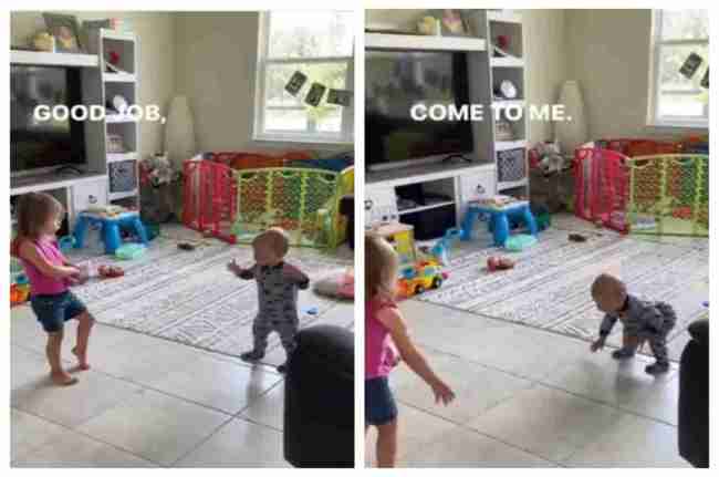 वीडियो में आप देखेंगे कि घर के ड्रॉइंग रूम में छोटे भाई को उसकी बड़ी बहन चलने के लिए प्रेरित कर रही है। इनकी मां ने बिना समय गवाएं दोनों का ये सुंदर पल अपने कैमरे में रिकॉर्ड कर लिया और सोशल मीडिया पर अपलोड कर दिया है।