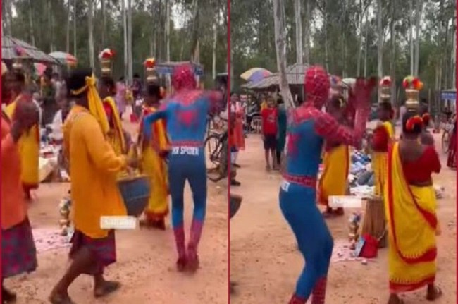 Viral Video: स्पाइडरमैन विदेशी फिल्मों में देखे जाते हैं, लेकिन उनके दीवाने भारत में भी बहुत हैं। स्पाइडरमैन फिल्में मजेदार होती हैं, लेकिन क्या आप सोच सकते हैं कि एक स्पाइडरमैन भारत में पश्चिम बंगाल की यात्रा पर हो और वह वहां महिलाओं के साथ लोक नृत्य कर रहा है? विचित्र बात लगती है, है ना? लेकिन ऐसा हुआ है। एक वीडियो सामने आया है, जिसे देख लोग बहुत खुश हो रहे हैं।