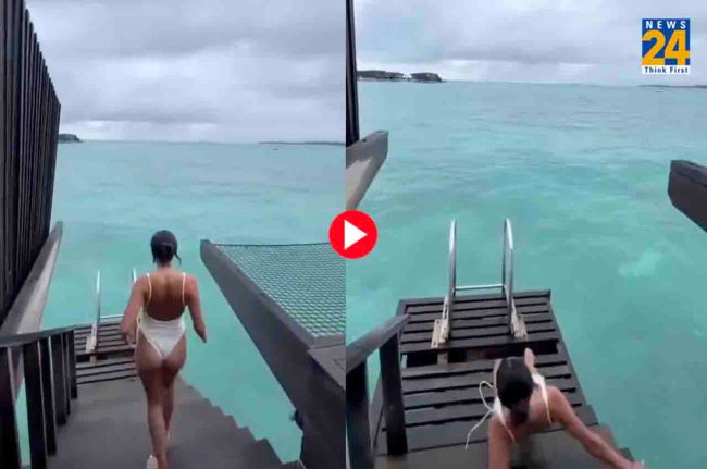 वायरल हो रहे इस वीडियो में एक महिला को उसके आलीशान रिसॉर्ट का भ्रमण करते हुए देखा जा सकता है जिसमें वह ठहरी हुई है। वीडियो में उसने आलीशान बेडरूम से लगे समुद्र और अपने निजी पूल के नजारों को भी दिखाया। बाथरोब पहनकर वह पूरे स्थान पर घूमी और जैसे ही वो समुद्र में डुबकी लगाने के लिए आगे बढ़ी उसका वहीं पैर फिसल जाता है और वो गिर जाती है।