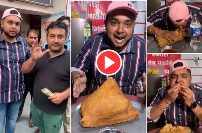 рд╕реЛрд╢рд▓ рдореАрдбрд┐рдпрд╛ рдкрд░ рд╣рд░-рд░реЛрдЬ рдирдП рддрд░реАрдХреЗ рд╡реАрдбрд┐рдпреЛ рджреЗрдЦрдиреЗ рдХреЛ рдорд┐рд▓рддреЗ рд╣реИред рдЖрдЬрдХрд▓ рд╕реЛрд╢рд▓ рдореАрдбрд┐рдпрд╛ рдкрд░ рд╕реНрдЯреНрд░реАрдЯ рдлреВрдб рдЪреИрд▓реЗрдВрдЬ рдХрд╛рдлреА рдЬреНрдпрд╛рджрд╛ рджреЗрдЦрдиреЗ рдХреЛ┬а рдорд┐рд▓рддреЗ рд╣реИрдВред рд╣рд╛рд▓ рдореЗрдВ рдПрдХ рд╡реАрдбрд┐рдпреЛ рддреЗрдЬреА рд╕реЗ рд╡рд╛рдпрд░рд▓ рд╣реЛ рд░рд╣реА рд╣реИред рдЗрд╕ рд╡реАрдбрд┐рдпреЛ рдореЗрдВ рджреЗрдЦрд╛ рдЬрд╛ рд╕рдХрддрд╛ рд╣реИ рдХрд┐ рдПрдХ рд▓рдбрд╝рдХрд╛ рдЕрдкрдирд╛ рджреЛрд╕реНрдд рдХреЗ рд╕рд╛рде рдПрдХ рджреБрдХрд╛рди рдкрд░ рдкрд╣реБрдВрдЪрддрд╛ рд╣реИ рдЬрд╣рд╛рдВ 5 рдорд┐рдирдЯ рдореЗрдВ 3 рдХрд┐рд▓реЛ рдХрд╛ рд╕рдореЛрд╕рд╛ рдЦрд╛рдиреЗ рдкрд░ 11 рд╣рдЬрд╛рд░ рд░реБрдкрдпреЗ рдХрд╛ рдИрдирд╛рдо рд░рдЦрд╛ рд╣реБрдЖ рдерд╛ред рд▓рдбрд╝рдХрд╛ рдЗрд╕ рдЪреИрд▓реЗрдВрдЬ рдХреЛ рдХрд░рдиреЗ рдХреЛ рддреИрдпрд╛рд░ рд╣реЛ рдЬрд╛рддрд╛ рд╣реИ, рдлрд┐рд░ рджреБрдХрд╛рдирджрд╛рд░ рднреА рдкреИрд╕реЗ рд▓реЗрдХрд░ рд╕рд╛рдордиреЗ рдЖ рдЬрд╛рддрд╛ рд╣реИред