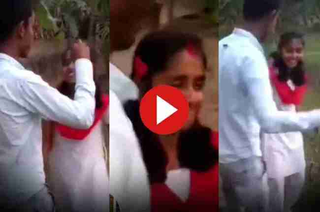 वायरल हो रहे इस वीडियो में आप देख सकते हैं कि एक लड़का-लड़की स्कूल के बाहर खड़े हैं और एक शख्स वीडियो रिकॉर्ड कर रहा है। वीडियो में लड़का-लड़की का हाथ पकड़े हुए है और लड़की शर्मा रही है। तभी लड़का उस लड़की की मांग में सिंदूर भरने के लिए बार-बार उसको अपने पास लाता है लेकिन लड़की उससे थोड़ा दूर जाने लगती है। तभी लड़का उसकी बात नहीं सुनता और उसकी मांग में सिंदूर भर देता है।