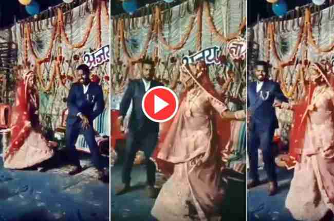 सामने आए वीडियो में देख सकते हैं कि बारात बैंक्वेट हॉल पहुंच चुकी है। दूल्हा स्टेज पर रखी मैरिज चेयर बैठा है कि तभी दुल्हन की एंट्री हुई। दुल्हन को स्टेज पर आता देख वो खुशी से उछल पड़ा। दुल्हन भी उसे देखकर बहुत खुश होती है। देख सकते हैं कि दोनों के स्टेज पर पहुंचते ही बैकग्राउंड में हिंदी फिल्म का गाना ‘तुमसा कोई प्यार…’ बजने लगता है।