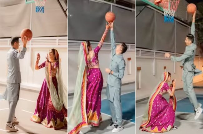 हाल ही में दूल्हा और दुल्हन का एक शानदार वीडियो हर किसी का दिल लूट रहा है। इस वीडियो को देख आपको शाहरुख और काजोल की फिल्म ‘कुछ कुछ होता है’ याद आ जाएगी। जो अक्सर एक साथ बास्केटबॉल खेलते थे जो उनका फेवरेट गेम था। वीडियो में दिख रही एक के बाद एक इन तस्वीरों में दूल्हा-दुल्हन बॉस्केटबॉल कोर्ट पर मस्ती से बॉस्केटबॉल खेलते नजर आ रहे हैं।