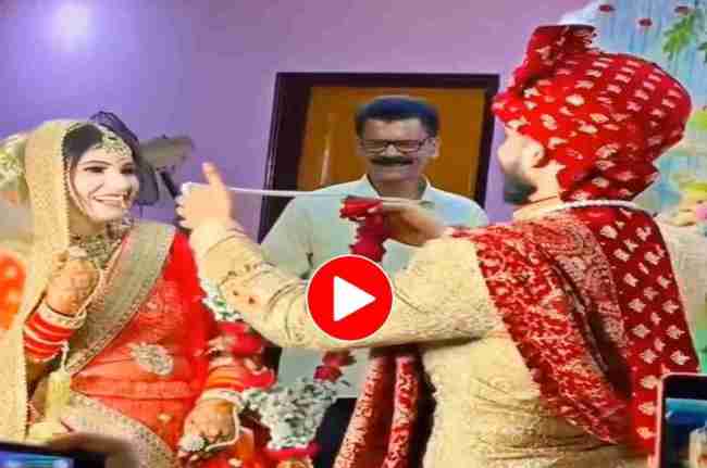 वायरल हो रहे इस वीडियो में दूल्हा-दुल्हन स्टेज पर वरमाला लेकर खड़े हैं और सारे महमान भी वहां मौजूद हैं। तभी दूल्हा-दुल्हन को वरमाला पहनाने के लिए आगे आता है। दुल्हन जैसे ही देखती है कि दूल्हा आगे बढ़ रहा है वो पीछे हट जाती है। दोनों के बीच खट्टी-मीठी नोकझोक चालू ही रहते हैं तभी दूल्हा सोफे पर बैठ जाता है। जैसे ही दुल्हन उसे बैठते देखती है, वैसे ही फट से वरमाला पहन लेती है।