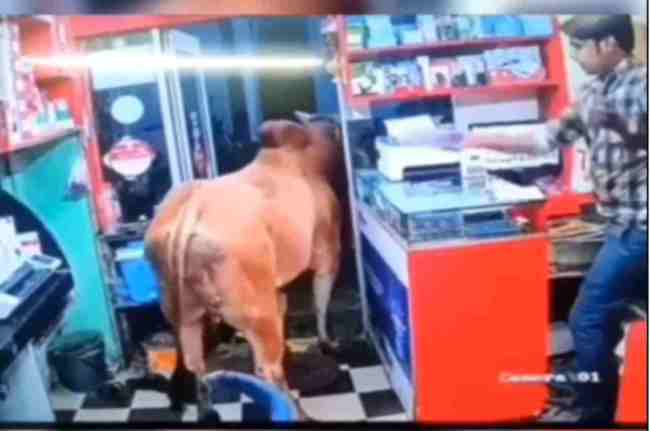 इस वायरल वीडियो में देख सकते है कि एक सांड कैसे एक मोबाइल शॉप में घुस जाता है। दुकानदार उसे देखते ही घबरा जाता है। कुछ सेकेंड बाद वो बोतल से पानी लेकर सांड के ऊपर डालता है। लेकिन सांड वहां से जाने का नाम नहीं लेता है और कुछ ही सैकंड में वहां दुसरा सांड आ जाता है। फिर दोनों में भयंकर लड़ाई देखने को मिलती है।