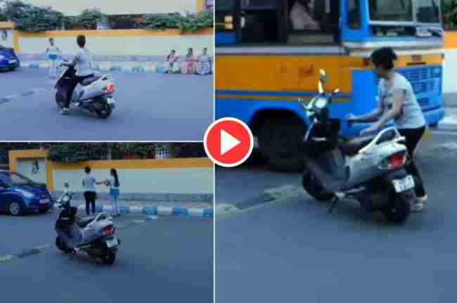 рд╕рд╛рдордиреЗ рдЖрдП рдордЬреЗрджрд╛рд░ рд╡реАрдбрд┐рдпреЛ рдореЗрдВ рджреЗрдЦ рд╕рдХрддреЗ рд╣реИрдВ рдХрд┐ рдПрдХ рд▓рдбрд╝рдХреА рдмрд┐рдирд╛ рд╣реЗрд▓рдореЗрдЯ рд░реЛрдб рдкрд░ рд╕реНрдХреВрдЯреА рджреМрдбрд╝рд╛ рд░рд╣реА рд╣реИред рдордЧрд░ рдЕрдЧрд▓реЗ рдХреБрдЫ рд╕реЗрдХрдВрдб рдмрд╛рдж рдЙрд╕рдиреЗ рд╕реНрдХреВрдЯреА рдмреАрдЪ рд░реЛрдб рдкрд░ рд╣реА рдЦрдбрд╝реА рдХрд░ рджреА рдФрд░ рдЦреБрдж рднрд╛рдЧ рдЦрдбрд╝реА рд╣реБрдИред рдмрд╛рдж рдореЗрдВ рдЬрдм рдмрд╕ рд╕реНрдХреВрдЯреА рдХреЗ рд╕рд╛рдордиреЗ рдЖрдХрд░ рд░реБрдХ рдЧрдИ рддреЛ рд▓рдбрд╝рдХреА рдиреЗ рдЗрд╕реЗ рдмреАрдЪ рд╕рдбрд╝рдХ рд╕реЗ рд╣рдЯрд╛рдпрд╛ред рджрд░рдЕрд╕рд▓ рд╕реНрдХреВрдЯреА рд╕рд╡рд╛рд░ рд▓рдбрд╝рдХреА рдиреЗ рд╕рдбрд╝рдХ рдХрд┐рдирд╛рд░реЗ рдЕрдкрдиреА рджреЛрд╕реНрдд рдХреЛ рджреЗрдЦрд╛ рддреЛ рдЦреБрд╢реА рд╕реЗ рдЙрдЫрд▓ рдкрдбрд╝реАред рдЙрд╕рдиреЗ рд╡рд╣реАрдВ рдмреАрдЪ рд░реЛрдб рдкрд░ рд╕реНрдХреВрдЯреА рдкрд╛рд░реНрдХ рдХреА рдФрд░ рддреБрд░рдВрдд рдЕрдкрдиреА рдлреНрд░реЗрдВрдб рдХреЗ рдкрд╛рд╕ рдЬрд╛ рдкрд╣реБрдВрдЪреАред рдлреНрд░реЗрдо рдореЗрдВ рдЗрд╕рдХреЗ рдмрд╛рдж рдЬреЛ рдХреБрдЫ рд╣реБрдЖ рдЦреВрдм рдордЬреЗрджрд╛рд░ рд╣реИ рдФрд░ рджреЗрдЦрдХрд░ рд╣рдВрд╕реА рдирд╣реАрдВ рд░реБрдХреЗрдЧреАред