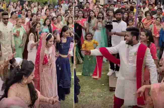 वायरल हो रहे इस वीडियो में आप देख सकते हैं कि दूल्हा बारात लेकर दुल्हन के घर पहुंच गया है। तभी दुल्हन जयमाला के लिए सामने से आते दिखाई दे रही है। दूल्हे से दुल्हन की सहेलियां उसे अलग अंदाज में प्रपोज करने को बोलती है। ये सुनते ही दूल्हा फिल्म ‘कुछ कुछ होता है’ का गाना ‘साजन जी घर आए’ पर डांस करना शुरू कर देता है। उसका ये डांस देख हर कोई हैरान रह जाता है। वहीं दुल्हन भी शर्म से लाल हो जाती है।