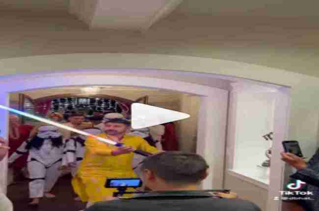 वायरल हो रहा ये वीडियो शादी का है। जहां दूल्हा बारात लेकर आता है, लेकिन वो जिस तरीके से बारात लेकर आता है वो काफी हैरान करने वाला है। दरअसल, दूल्हा जब हॉल में एंट्री लेता है तो स्टार वॉर की तरह आता है उसके पीछे कई सैनिक होते हैं जो काफी अलग तरीके का कपड़ा पहने होते हैं। वहीं दूल्हा पीले रंग का कुर्ता पहना हुआ होता है। फिर कुछ समय बाद दूल्हा भांगड़ा करने लग जाता है।