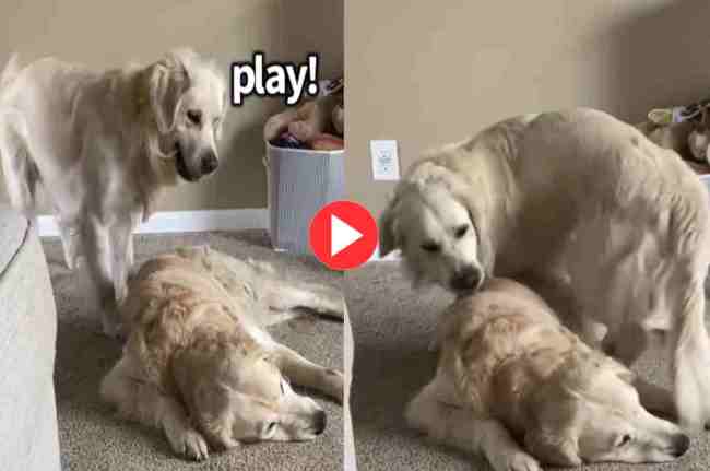 इंस्टाग्राम पर शेयर किए गए इस मनमोहक वीडियो में दो गोल्डन रिट्रीवर कुत्ते दिखाई देते हैं जो आपस में भाई हैं। एक कुत्ता आराम से लेटा होता है जबकि दूसरा कुत्ता उससे खेलने की जिद करता रहता है। अपनी बात मनवाने के लिए ये कुत्ता लेटे वाले कुत्ते के सिर पर चढ़कर उसको परेशान भी करने लगता है ताकि वो उठकर उसके साथ खेले। आप भी देखिए ये मजेदार वीडियो: