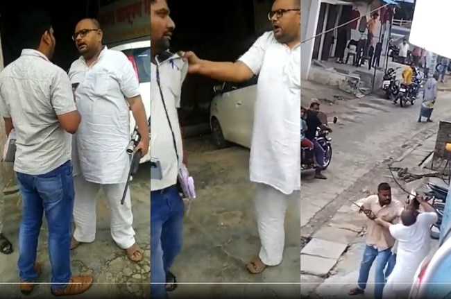 जैसे ही लाइनमैन बिजली का कनैक्शन काटने के लिए पोल पर चढ़ा तो कारोबारी अपनी लाइसेंसी रायफल लेकर आ गया। दोनों को धमकाने लगे। कारोबारी और लाइनमैन में तीखी बहस होने लगी। इसी बीच देखते ही देखते दोनों में मारपीट चालू हो गई। जेई के साथ मौजूद एक व्यक्ति ने सबसे पहले कारोबारी की लाइसेंसी रायफल को अपने काबू में किया। फिर दोनों ओर से जमकर लात-घूंसे चले। बाद में कारोबारी ने अपनी चप्पल उतार कर जेई पर हमला किया। वहीं घटना के दो वीडियो वायरल हुए हैं। एक वीडियो तो वहीं नीचे खड़े किसी व्यक्ति ने बनाया है। जबकि दूसरा वीडियो छत से किसी ने बनाया है। दोनों वीडियो सोशल मीडिया पर वायरल हो रहे हैं। वहीं एसओ नगरा देवेंद्र नाथ दूबे ने बताया कि जेई की तहरीर पर कारोबारी के खिलाफ मुकदमा दर्ज किया गया है।