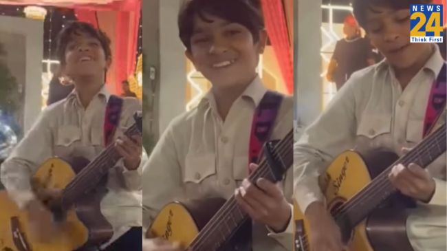 आपको बता दे बच्चे का ये वीडियो राजिस्थान का है. इस बच्चे ने न सिर्फ गाना गाकर लोगों के दिल में अपनी जगह बनाई बल्कि अपनी गिटार बजाने वाली कला से भी सभी का दिल मुह लिया. बच्चे के इस वीडियो पर लोगों ने जमकर कंमेट किए किसी ने क्यूट लिखा तो किसी ने गजब अवाज है बच्चे की कहकर कंमेट किया. वीडियो में देखा जा सकता है कि शादी के फंक्शन के दौरान जब बाकी मेहमान बच्चे के डांस या मस्ती की उम्मीद कर रहे थे, तभी यह छोटा सा कलाकार मंच पर गिटार के साथ परफॉर्म करता नजर आया. उसकी मासूम आवाज और आत्मविश्वास से भरा अंदाज लोगों को इतना पसंद आया कि वहां मौजूद मेहमान भी तालियां बजाने लगे. सोशल मीडिया यूजर्स इस बच्चे को “भविष्य का स्टार”, “लिटिल रॉकस्टार” और “नेचुरल टैलेंट” बता रहे हैं, वहीं कई लोग यह भी कह रहे हैं कि ऐसे टैलेंट को सही मंच मिले तो यह बच्चा आगे चलकर बड़ा नाम कमा सकता है.