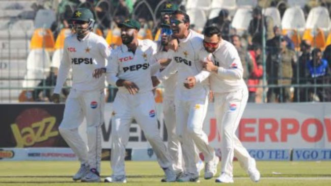 मेजबान टीम महज 154 रन बनाकर ही फर्स्ट इनिंग में ढेर हो गई। पाकिस्तान की ओर से स्पिन गेंदबाज नोमान अली ने कहर बरपाते हुए 6 विकेट झटके और हैट्रिक को भी अपने नाम किया। वह पाकिस्तान की ओर से हैट्रिक लेने वाले पहले स्पिन गेंदबाज बने।