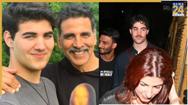 Akshay Kumar Son Aarav: बॉलीवुड एक्टर अक्षय कुमार के बेटे आरव लाइमाइट में आ गए हैं. हाल में खिलाड़ी कुमार पत्नी ट्विंकल खन्ना और बेटे के साथ डिनर पर पहुंचे. इस दौरान आरव के लुक ने हर किसी का ध्यान खींचा. कई फैंस तो आरव के लुक को देखकर हैरान रह गए. कुछ लोगों ने जहां आरव को पिता अक्षय की तरह बताया, तो कुछ ने उन्हें राजेश खन्ना जैसा बता दिया और कुछ विदेशी समझ बैठे.