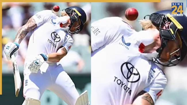 Ashes 2025-26: एशेज सीरीज का तीसरा मुकाबला एडिलेड के मैदान पर खेला जा रहा है. इस मैच में ऑस्ट्रेलिया की टीम मजबूत स्थिति में नजर आ रही है. मैच में 3 दिन का खेल हो चुका है. इस मैच में कुछ ऐसा हुआ कि कुछ वक्त के लिए हर किसी की सांसे थम गई. मिचेल स्टार्क की एक तीखी बाउंसर सीधे जाकर बेन स्टोक्स के गर्दन के ऊपरी हिस्सा में जाकर लगी. जैसे ही गेंद बेन स्टोक्स को लगी हर कोई उनके पास गया और उनसे हाल-चाल पूछा. गनीमत रही कि स्टोक्स को कुछ नहीं हुआ और उन्होंने बल्लेबाजी जारी रखी.