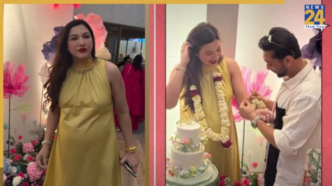 Gauahar Khan Baby Shower: मशहूर एक्ट्रेस गौहर खान प्रेग्नेंट हैं और जल्द ही मां बनने वाली हैं। वो अपने दूसरे बेबी का इस दुनिया में वेलकम करने के लिए बेहद एक्साइटेड हैं। अब इस बेबी के दुनिया में आने से पहले गौहर खान की बेबी शावर पार्टी रखी गई थी। जिसकी झलकियां एक्ट्रेस ने खुद फैंस के साथ शेयर की हैं। येलो ड्रेस पहने मॉम टू बी एक्ट्रेस स्पेशल केक काटती हुई दिखाई दी हैं। गौहर खान ने ड्रीमी डेकोरेशंस के बीच जश्न मनाया। पति जैद दरबार ने इस दौरान अपनी प्रेग्नेंट वाइफ पर प्यार से फूल बरसाए, जिसके बाद एक्ट्रेस के चेहरे पर नूर आ गया।