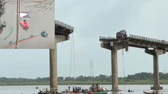 Video: गुजरात के वडोदरा में 9 जुलाई को एक दर्दनाक हादसा हुआ, जिसमें 17 लोगों की मौत हो गई। यह हादसा गंभीरा पुल गिरने की वजह से हुआ, जिस पर मौजूद गाड़िया पुल के नीचे नदी में गिर गईं। इसका एक नया वीडियो सामने आया है, जिसमें एक महिला नदी में है और वह अपनी जान बचाने के लिए चिल्ला रही है। रोती-बिलखती महिला का यह वीडियो देख किसी का भी दिल सहम जाएगा। इस दौरान वह गुजराती भाषा में कह रही है कि मेरे पति और बच्चे डूब गए हैं, उन्हें कोई बचा लो।