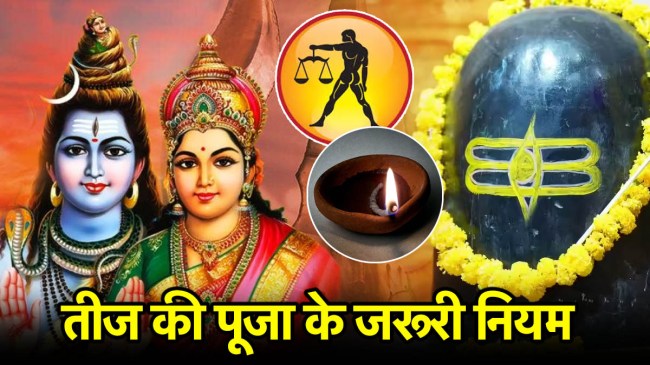 प्रश्न कुंडली विशेषज्ञ पंडित सुरेश पांडेय बताते हैं कि तुला राशि की विवाहित और अविवाहित महिलाएं यदि हरियाली तीज की शाम कुछ खास उपाय करती हैं तो उन्हें शिव-पार्वती की कृपा से मनचाहा वरदान मिल सकता है। इसी के साथ शिवलिंग के पास संध्या के समय घी का दीपक जलाना भी शुभ रहेगा। हरियाली तीज के अन्य उपायों के बारे में जानने के लिए आप ऊपर दिए गए वीडियो को देख सकते हैं।