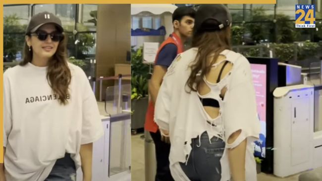 Bollywood Actress Viral Video: बॉलीवुड एक्ट्रेस हुमा कुरैशी का सोशल मीडिया पर एक वीडियो वायरल हो रहा है. एक्ट्रेस का एयरपोर्ट लुक देखकर फैंस का भी सिर चकरा गया है. एयरपोर्ट पर वो जिस हल में दिखाई दी हैं, उसके बाद उनके फैशन सेंस पर सवाल उठ रहे हैं. हुमा ने ऐसी टीशर्ट पहनी है, जिसके पीछे से चिथड़े उड़े हुए हैं. आगे से तो वो बेहद कूल लग रही थीं, जीन्स, ओवरसाइज टीशर्ट और कैप के साथ सनग्लास लगाकर एक्ट्रेस काफी अच्छी दिख रही थीं, लेकिन जैसे ही वो पलटीं अलग ही नजारा देखने को मिला. कटे-फटे कपड़ों में एक्ट्रेस को देखकर अब सोशल मीडिया यूजर्स ने माथा पीटना शुरू कर दिया है.