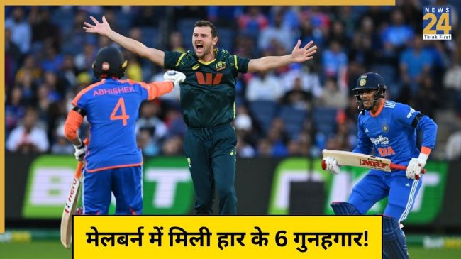 IND vs AUS: मेलबर्न में टीम इंडिया के बल्लेबाजों ने अपने घटिया प्रदर्शन से नाक कटा डाली. सीरीज के दूसरे टी-20 इंटरनेशनल मुकाबले में भारतीय बैटिंग ऑर्डर कंगारू तेज गेंदबाजों के आगे ताश के पत्तों की तरह बिखर गया. बल्लेबाजों के बीच पवेलियन लौटने की होड़ सी नजर आई और पूरी टीम सिर्फ 125 रन बनाकर ढेर हो गई. ऑस्ट्रेलिया ने आसानी से 126 रनों के लक्ष्य को 6 विकेट खोकर हासिल कर लिया. आइए आपको बताते हैं मेलबर्न में मिली टीम इंडिया को हार के कौन रहे छह गुनहगार.
