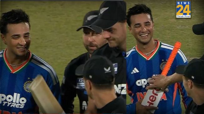 अभिषेक शर्मा की तूफानी बल्लेबाजी देख सिर्फ फैंस ही नहीं, न्यूजीलैंड टीम के खिलाड़ी भी हैरान नजर आए. कुछ तस्वीरें सामने आई हैं, जहां न्यूजीलैंड के खिलाड़ियों ने मैच के बाद अभिषेक शर्मा से मुलाकात की और उनका बल्ला चेक किया. न्यूजीलैंड प्लेयर्स को ऐसा लगा कि अभिषेक के बैट में कुछ गड़बड़ी है, जबकि ऐसा कुछ नहीं निकला. पूरी जानकारी और ICC के बैट से जुड़े नियम जानने के लिए आप वीडियो देख सकते हैं.
