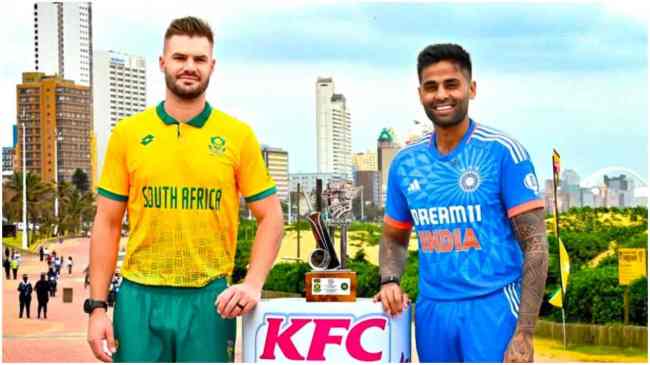 India vs South Africa: भारत और साउथ अफ्रीका के बीच चार मैचों की टी-20 सीरीज की शुरुआत 8 नवंबर से हो रही है। इस सीरीज के लिए भारतीय टीम का ऐलान हो चुका है, जहां टीम की कमान सूर्यकुमार यादव के हाथों में होगी। इस सीरीज के लिए कई युवा खिलाड़ियों को मौका दिया गया है। सीरीज का पहला मुकाबला डरबन के किंग्समीड मैदान पर खेला जाएगा, जो भारतीय समयानुसार रात साढ़े नौ बजे शुरू होगा।