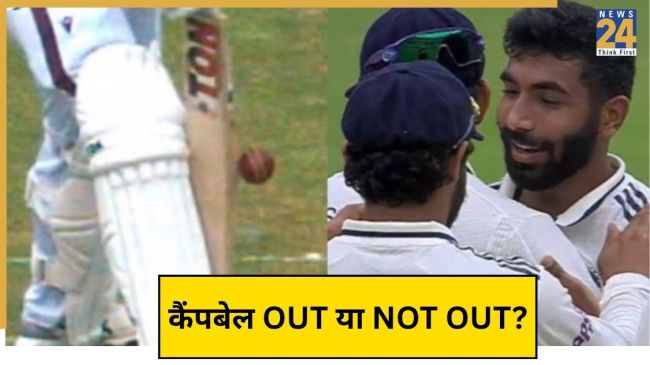 हालांकि, जॉन कैंपबेल के विकेट को लेकर सोशल मीडिया पर बवाल मच रहा है. दरअसल, बुमराह की गेंद कैंपबेल के बल्ले के पास से गुजरी और भारतीय टीम ने जश्न मनाना शुरू कर दिया. हालांकि, ऑन फील्ड अंपायर ने कैंपबेल को आउट करार नहीं दिया. इसके बाद कप्तान गिल ने रिव्यू लिया. रिप्ले में जिस समय बॉल बल्ले से पास से गुजरी उसी वक्त बैट पैड पर भी लगता हुआ दिखाई दिया. अब थर्ड अंपायर ने बल्ले का संपर्क गेंद से हुआ है ऐसे मानते हुए कैंपबेल को आउट करार दे दिया. थर्ड अंपायर के फैसले से बल्लेबाज और वेस्टइंडीज की पूरी टीम नाखुश दिखाई दी. अधिक जानकारी के लिए देखिए वीडियो.
