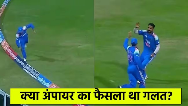 पाकिस्तान की पारी के 10वें ओवर में जब माज सदाकत बल्लेबाजी कर रहे थे. उस समय उन्होंने सुयश शर्मा की गेंद पर बड़ा शॉट खेला. गेंद को बाउंड्री लाइन पर नेहाल वढेरा ने कैच किया और दूसरी तरफ फेंका, गेंद को उसके बाद नमन धीर ने पकड़ लिया. हालांकि उसके बाद भी अंपायर ने नॉट आउट दे दिया. दरअसल आईसीसी के नए नियम के अनुसार जब कैच पकड़ा जाए तो दोनों ही फील्डर बाउंड्री लाइन के बाहर होने चाहिए. जोकि इस कैच के दौरान नहीं था.