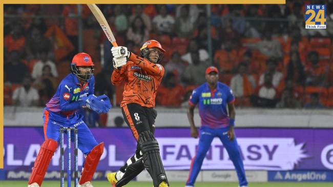 SRH vs DC: आईपीएल 2026 में अभिषेक शर्मा ने अब कमबैक कर लिया है. दिल्ली कैपिटल्स के खिलाफ मुकाबले में उन्होंने बहुत ही शानदार पारी खेली. अक्षर पटेल ने टॉस जीतने के बाद हैदराबाद की टीम को पहले बल्लेबाजी के लिए बुलाया. जिसका फायदा उठाकर सनराइजर्स हैदराबाद की टीम ने 20 ओवरों में 2 विकेट गंवाकर 242 रन बनाए. इस दौरान सलामी बल्लेबाज अभिषेक शर्मा ने अकेले ही दम पर 68 गेंदों में नाबाद 135 रन जड़ दिए. इस तूफानी पारी के बाद उनका सेलिब्रेशन देखने लायक था.