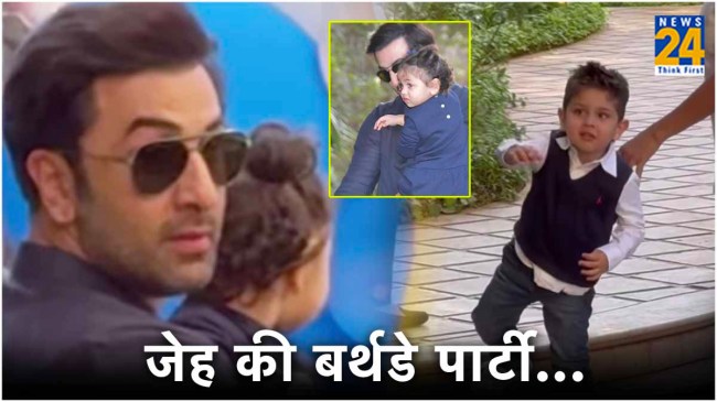 Jeh Birthday Party: बॉलीवुड एक्ट्रेस करीना कपूर (Kareena Kapoor) और सैफ अली खान (Saif Ali Khan) के छोटे नवाब जेह (Jeh) का आज तीसरा जन्मदिन है। इस खास मौके को कपल ने धूमधाम से सेलिब्रेट किया। जेह की बर्थडे पार्टी में उस समय सबकी निगाहें थम गईं जब रणबीर कपूर और आलिया भट्ट की लाडली बेटी राहा ने पार्टी में एंट्री की। इस दौरान राहा पापा के सीने से चिपकी हुई दिखीं। उनकी मासूमियत और क्यूटनेस ने फैंस का दिल जीत लिया। हालांकि जेह की बर्थडे पार्टी में रणबीर बेटी राहा के अलावा भांजी समायरा को लेकर भी पहुंचे। वहीं एक्ट्रेस सोनम कपूर भी बेटे वायु के साथ पार्टी अटेंड करने पहुंची। जेह के बर्थडे सेलिब्रेशन की कई तस्वीरें और वीडियो सोशल मीडिया पर सामने आई हैं।