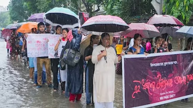 Kolkata Doctor Rape Murder Case : कोलकाता रेप-मर्डर मामले में जूनियर्स डॉक्टरों का गुस्सा सातवें आसमान पर है। भारी बारिश में भी डॉक्टरों का विरोध प्रदर्शन जारी है। वे तिरपाल के नीचे बैठकर प्रदर्शन कर रहे हैं। इस बीच भाजपा नेता सुवेंदु अधिकारी के एक बयान ने आग में घी डालने का काम किया। डॉक्टरों ने राष्ट्रपति और प्रधानमंत्री को पत्र लिखा। वीडियो में देखें पूरी स्टोरी।