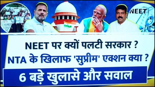 5 मई को हुई इस परीक्षा में 24 लाख छात्र शामिल हुए थे। इसका रिजल्ट 4 जून को सामने आया था। परिणाम आने पर पता चला कि 67 छात्रों को 720 में से पूरे 720 अंक मिले थे। इसके बाद पेपर लीक का मुद्दा उछला। यह मामला सुप्रीम कोर्ट तक पहुंच चुका है। अब इस मामले को लेकर केंद्र सरकार क्यों पलटी, सुप्रीम कोर्ट में इसे लेकर अब तक क्या-क्या हुआ, विपक्ष ने इसे लेकर क्य-क्या आरोप लगाए हैं और NEET मामले की पूरी टाइमलाइन क्या है, इन सभी सवालों के जवाब जानने के लिए देखिए यह खास वीडियो स्टोरी।