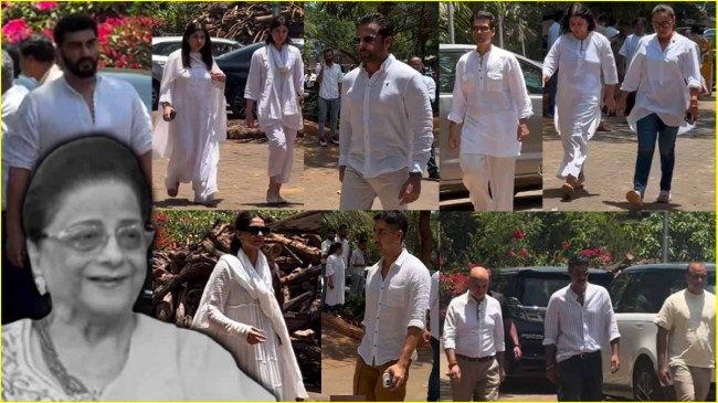 निर्मल कपूर के अंतिम संस्कार में सोनम कपूर, शनाया कपूर, अयान मुखर्जी, रानी मुखर्जी, करण जौहर, फरदीन खान, शिखर पहाड़िया, सुनीता कपूर, अनुपम खेर, बोनी कपूर, अर्जुन कपूर सहित तमाम स्टार्स पहुंचे हैं। सोशल मीडिया पर सेलेब्स के वीडियो भी सामने आ रहे हैं। इस वक्त पूरा बॉलीवुड कपूर परिवार के साथ खड़ा है और उनका दुख बांट रहा है। ज्यादा जानकारी के लिए आप दिए गए वीडियो को देख सकते हैं।