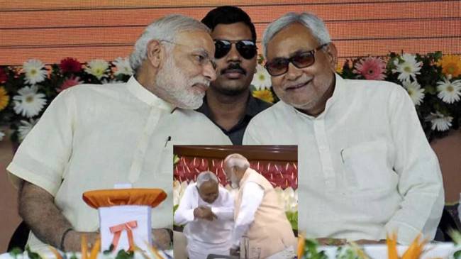 वीडियो में साफ देखा जा सकता है कि नीतीश कुमार पीएम का पैर छूने के लिए नीचे झुकते हैं। मगर प्रधानमंत्री मोदी उन्हें रोक कर हाथ मिलाने लगते हैं। संविधान सदन से ये वीडियो तेजी से वायरल हो रहा है। यहां देखें पूरा वीडियो…