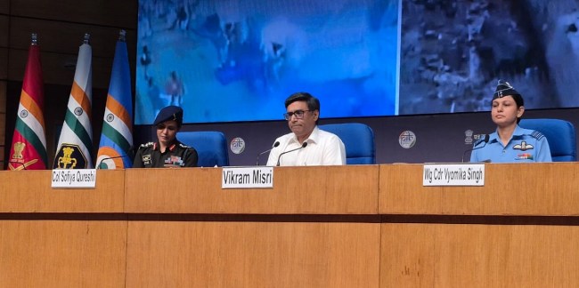 Operation Sindoor Media Briefing: ऑपरेशन सिंदूर पर भारतीय सेना ने प्रेस कॉन्फ्रेंस करके जानकारी दी। ठीक 10:30 बजे प्रेस कॉन्फ्रेंस शुरू हुई। जिसे विदेश सचिव विक्रम मिस्री, कर्नल सोफिया कुरैशी और विंग कमांडर व्योमिका सिंह ने संबोधित किया। चीफ ऑफ डिफेंस स्टाफ (CDS) जनरल अनिल चौहान ने दिल्ली में रक्षा मंत्री राजनाथ सिंह से मुलाकात करके ऑपरेशन की जानकारी दी।